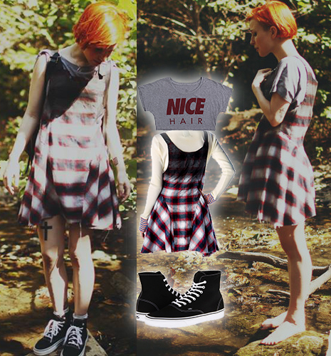 A Paramore énekesnőjének alig 38.000 forintot érő összeállítása a Vans 50 dolláros csukájából, a UNIF 80 dolcsis dresszéből és az Alex and Chloe által árusított 44 dolláros Nice Hair feliratú topból áll. Outfitjét tavaly októberben egy nashville-i túrázáshoz kapta magára, de rajongói több koncerten és kulisszák mögötti lesifotókon is találkozhattak már vele.