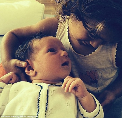 Bruce és Emma második közös gyermeke, Evelyn három héttel ezelőtt látott napvilágot, és máris nagyon szoros kapcsolatot ápol idősebb tesójával, Mabellel.
