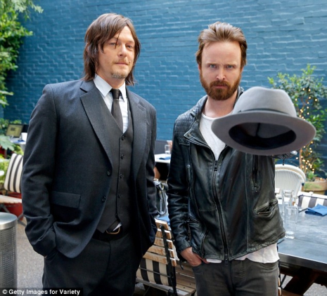 Hamarosan megkezdődik a Breaking Bad és a The Walking Dead sztárjainak közös filmjének a forgatása – de előtte részt vettek egy, a Variety Studióban rendezett interjún Nyugat-Hollywoodban. Norman szuperelegáns öltönyt húzott, Aaron pedig hozta a szakadt rocker-formáját.