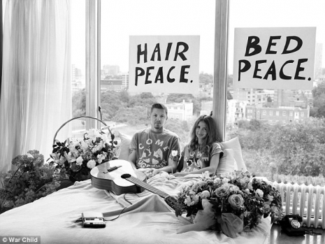 A reklámhoz készült képek tegnap látták meg a napvilágot, és sokaknál feltűnt a hasonlóság John Lennon és Yoko Ono képe között, melyen az amszterdami Hilton hotelben vannak. Ez nem is véletlen, hiszen ez a fotó volt az ő sorozatuk alapja.