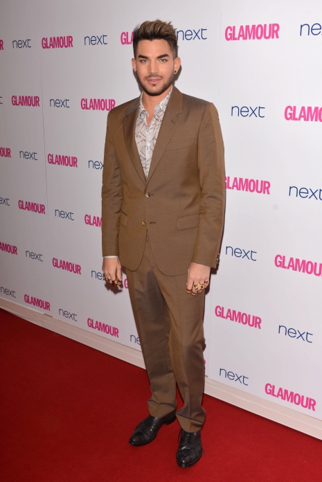 Az amerikai sztár jelenleg is a Queennel próbál Angliában, de szakított arra időt, hogy megjelenjen az átadón. Az énekes homokszínű öltönyt választott Alexander McQueen-, kígyóbőr hatású inggel, arany kiegészítőkkel.