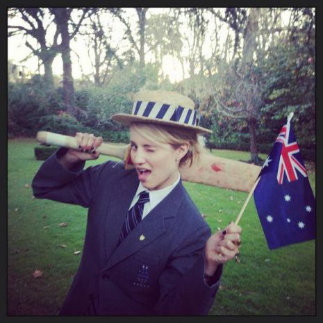 „A dolgok, amiket szeretek Sydneyben. Az iskolai egyenruhák. Vajon most mit mondana J'amie? Tengerparti fiú” – fűzte hozzá múlt hétfőn a közösségi oldalaira feltöltött bohókás fotóhoz a színésznő.