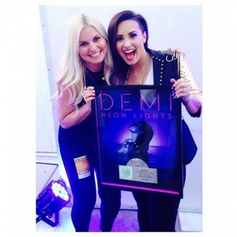 Színpadra lépése előtt pedig átvehette azt az elismerést, amit azért kapott, amiért a Neon Lights elérte a platinalemez státuszát, így a Give Your Heart A Break (háromszoros), Heart Attack (kétszeres), This Is Me, Skyscraper és Let It Go után, újabb platinalemezes dalt tudhat magáénak.