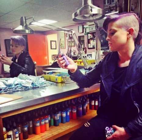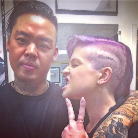 A 29 éves sztár ezúttal is nem mindennapi külsejével hívta fel magára a publikum figyelmét, ugyanis nemrégiben a Stories... feliratot tetováltatta a bal füle fölé Dr. Woo tetoválóművésszel a Shamrock Social Club szalonban.