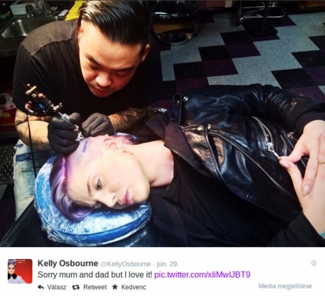 „Bocsi, anyu és apu, de imádom!” – írta Kelly később a Twitteren, amikor feltöltött egy képet a tetoválási folyamatról, majd a végeredményt ismét az Instagramon tette közzé: „Köszönöm, @dr_woo_ssc, varázslatos, amire képes vagy!”