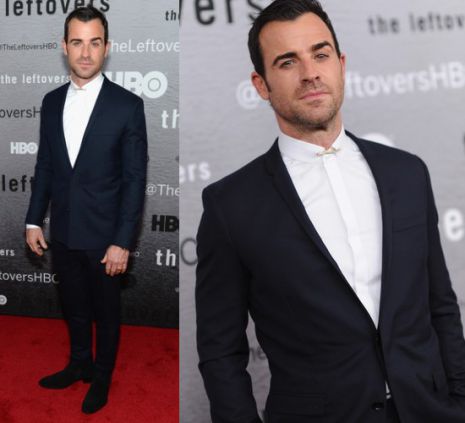Justin Theroux is a The Leftovers bemutatóján vett részt június 23-án New Yorkban, ahol egy elegáns, sötétkék színű Dior Homme-öltönyben tett jelenést, melyhez egyszerű fehér inget vett fel, nyakkendőjét pedig ez alkalommal otthon hagyta.