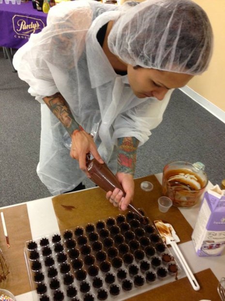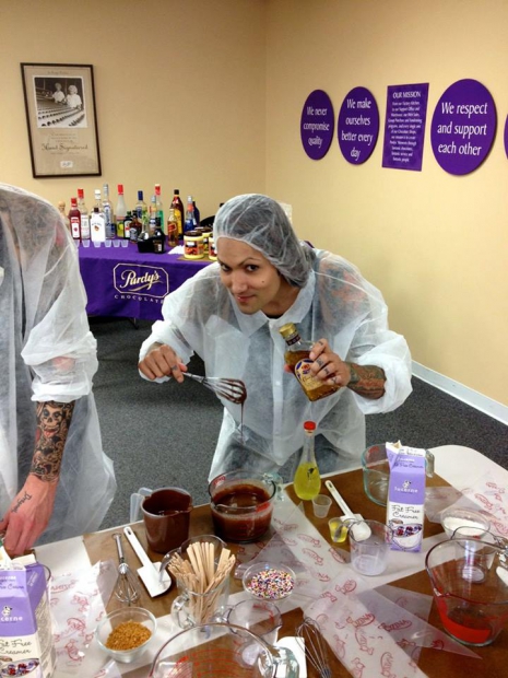 A tegnapi nap folyamán a Purdy's Chocolatier csokikészítőjének, Gary Mitchellnek a konyhájában tevékenykedett a Black Veil Bridesból ismert Andy Biersack és Ashley Purdy. Az 1907 óta népszerűségnek örvendő csokoládégyár természetesen képeket is posztolt közösségi oldalain keresztül, hogy megmutassa, hogyan is haladt a munka a zenészekkel.