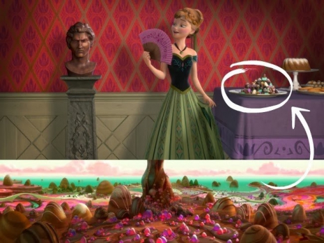 33. Anna csokiimádatával a Rontó Ralphra utalnak.