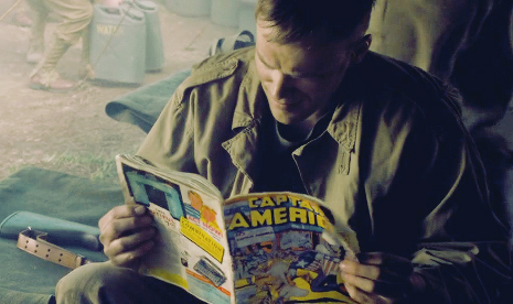 15. Az első Amerika kapitány-képregény is feltűnik a filmben. A való életben ez inspirálta a filmet, a filmben viszont Steve Rogers inspirálta a képregény létrehozását.