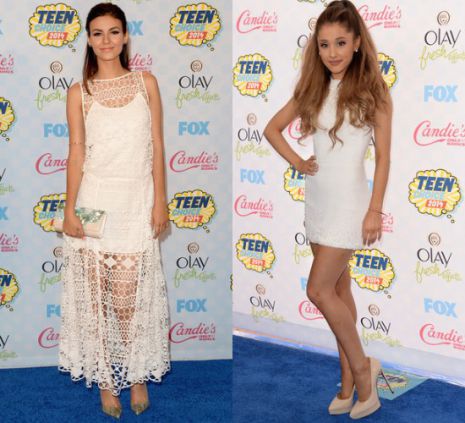 Ariana szintén fehérbe öltözött, ám ő egy 2013-as Georges Chakra-minire voksolt, melynek nyak- és szegélyrésze kristályokkal díszített.