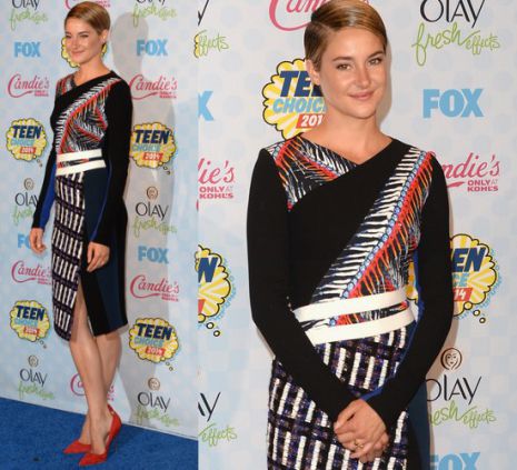 A 22 éves színésznő két szörfdeszkával is gazdagodott az est folyamán, melyeket egy 2014-es, hosszú ujjú Peter Pilotto-ruhában vett át, amit különböző minták sokasága borít, így szerencsésen ékszerek terén a minimumra törekedett gyűrűjével, piros Kurt Geiger-lépője pedig tökéletesen passzol összeállításához.