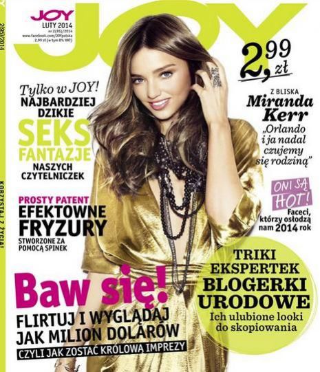 A Joy hazai szerkesztői is megváltak a rendes stábtól és az áprilisi címlap készítéséhez úgy tűnik, olyanokat kértek fel, akik vagy utálják Mirandát vagy szimplán nincsenek megelégedve külsejével. Az arca, már nem is tudjuk, hogy kiére hasonlít, emellett a fekete lánchad is megtalálható rajta, mindössze a ruha színén változtattak, ami egyébként leginkább egy lila fürdőköpenyre hajaz.