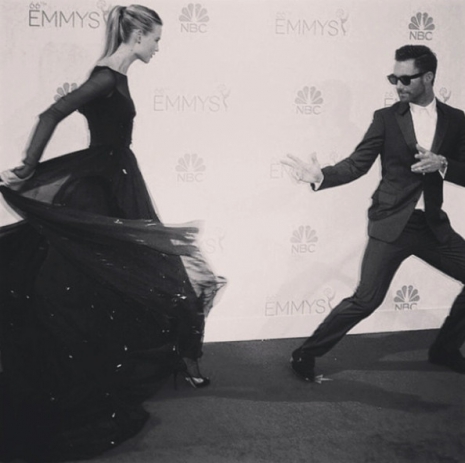 Jó hangulatot teremtett a Maroon 5 énekese és felesége, Behati Prinsloo az Emmys vörös szőnyegén. Csak nem tangóznak?