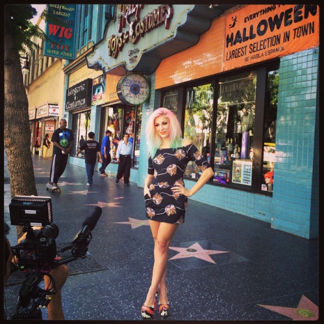 Katy Perry jó barátnője, Bonnie McKee, új lemezén dolgozik Los Angelesben és nemrégiben szőke haját is bemutatta követőinek, ami a népszerű vörös fürtjeit váltotta. Hidrogén szőke hajába most néhány színes tincs is bekerült, amit büszkén mutogatott Hollywood utcáin.
