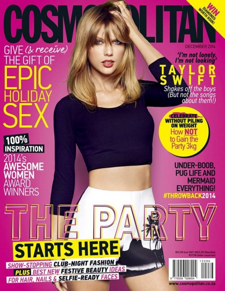 Olaszország, Dél-Afrika, Franciaország, Dél-Korea, Nagy Britannia és Magyarország. Csak néhány azon 23 állam közül, amelyekben a Cosmopolitan magazinok címlapjain Taylor Swift lesz látható. A decemberi számokban egy interjú is olvasható lesz, amely a népszerű énekesnővel készült. A Shake It Off, a Love Story, vagy éppen a Mine című világslágerek előadónője őszintén vall a szerelemről, a boldoságról és arról, hogy mi inspirálja őt zenei téren.