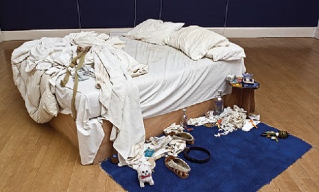 Ez a rendetlen ágy valójában egy műalkotás, amit a londoni Tate Galériában állítottak ki és amely Tracey Emin keze munkáját és kreativitását dicséri. Az installáció „Az én ágyam” fantázianevet kapta, amely darab a „vallomásos mű” kategóriájában szerepelt a kiállításon, mivel a művészt egy csúnya szakítás utáni, öngyilkos gondolatokkal teli depressziós állapota ihlette meg.