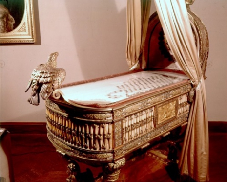 Ez a nagyon pazar kiságy Napóleon egyetlen örököséé, II. Napóleon római királyé volt. A csodálatos darab számos kiemelkedő 19. századi kézműves munkáját dicséri. Olyan művészek dolgoztak rajta, mint például Pierre-Philippe Thomire szobrász, az ezüstműves Charles Nicolas Odiot vagy éppen a festő Pierre-Paul Prud’hon. Ezt a bölcsőt adták ajándékba II. Napóleon anyjának, Mária Lujzának.