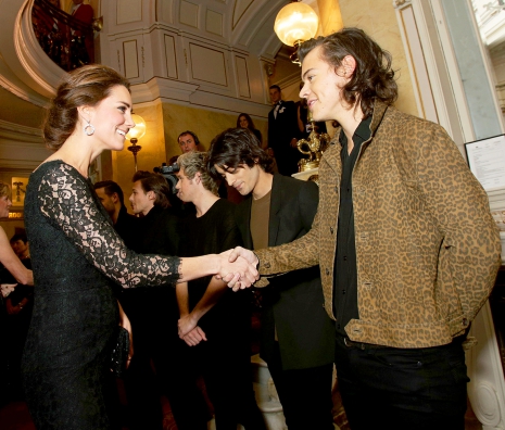 A srácok az előadáson személyesen is gratulálhattak a cambridge-i hercegnőnek, Kate Middletonnak, ám Harry Styles elmondása szerint annyira izgatottak és idegesek voltak, hogy csak össze-vissza motyogtak, míg végül sikerült közölniük mondandójukat.