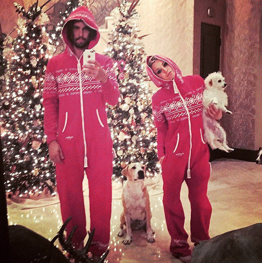 Mindenkinek kötelező darab egy 'csúnya' karácsonyi pulcsi vagy éppen kezes-lábas a szekrényben. A színésznő komolyan vette ezt a szokást, és férjével együtt, a kisállatokkal karöltve, pózolnak a karácsonyfa előtt, felkészülve az ünnepekre!