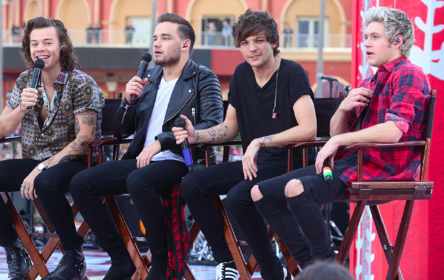 A One Direction négy megmaradt tagja, 2014-ben, Orlandóban | balról-jobbra: Harry Styles, Liam Payne, Louis Tomlinson és Niall Horan