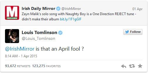 Eközben az ír Daily Mirror arról írt, hogy a kiszivárgott dal valójában nem Zayn Malik első önálló dala akar lenni, hanem a One Direction legutóbbi albumára írt, ám végül visszadobott demófelvétel. Ezt azonban Louis Tomlinson a Twitteren egyértelműen cáfolta: Ez egy április tréfa?