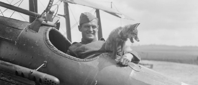 A kis róka töltötte be a 32-es számú repülőszázad kabalaszerepét, méghozzá a Humieres repülőtéren St. Polnál, Franciaországban. A fotó 1918. május 5-én készült.