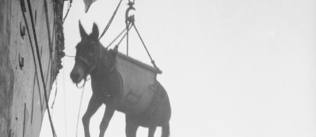 Az olaszok öszvért eresztenek le Szalonikinél 1916-ban.