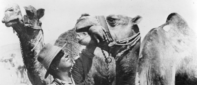 Egy bemutatón készült ez a felvétel, ahol azt prezentálták, hogy a tevék mennyire engedelmes állatok. Az ausztrál férfi teljes bizalommal helyezi csuklóját a négylábú szájába 1917. szeptember 17-én, Egyiptomban.