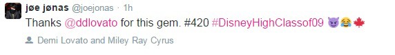 Az Instagram segítségével felidézte Joe Jonas másfél évvel ezelőtt tett nyilatkozatát, amely mellé még Photoshop-„tudását” is megcsillogtatta. Az egykori kalandjaink tiszteletére, úgy gondoltam, hogy meg szeretnél emlékezni az első füvezésedről.. Boldog 420-at @joejonas. #disneyhighclassof09