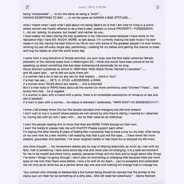 Ariana egy hosszú közleményt is kiadott, amelyben részletesen kifejtette álláspontját. Amit arról mondtam, hogy nem vagyok Big Sean exe, úgy értettem, hogy elegem van abból, hogy olyan világban élünk, ahol a nőkre általában egy férfi múltbéli, jelenlegi vagy jövőbeli TULAJDONAKÉNT utalnak. Én. Nem. Tartozom. Senkihez. Csak saját magamhoz. És te sem.