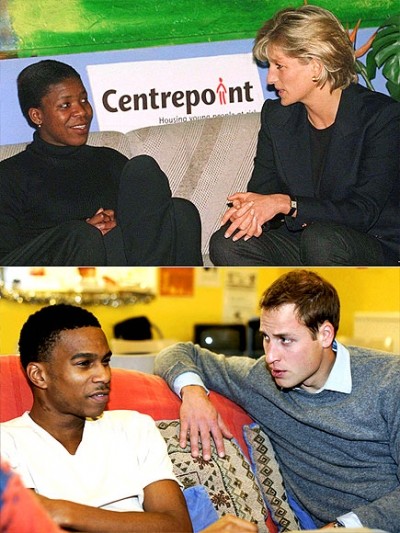 Lady Diana a Centrepoint hajléktalan fiatalokkal foglalkozó alapítvány egyik védnöke volt, és 1997-ben az egyik londoni intézményükben találkozott néhány védencével. Édesanyja halála után William herceg vette át a feladatait.