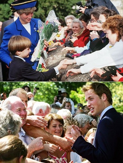 Walesi hercegnőként a tartomány fontos helyet töltött be a szívében, és az évenkénti Szent Dávid napon megrendezett találkozókon Lady Diana megtaníthatta a fiainak, hogyan találják meg a közös hangot az emberekkel. A második, tizenhat évvel később készült fotón William már egyedül fogadta a walesiek üdvözlését.