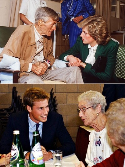 1985-ben az ifjú hercegnő a londoni St. Joseph Hospice otthonban látogatta meg az idős embereket. William Skóciában járt, hogy a glasgow-i Sighthill Community Education Centerben egy jó hangulatú ebéd során beszélgessen az ottani idősekkel.