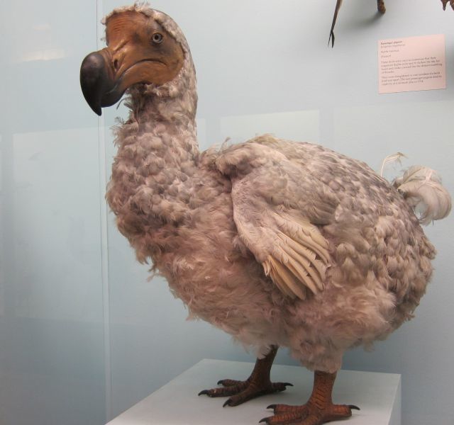 A Mauritius szigetén élt egyméteres galambféle mára már az ember által kipusztított fajok jelképévé vált. Ugyan valószínűleg már a 10. században is találkozhattak emberekkel, az igazi változás csak a hollandok megérkezésével vette kezdetét, 1638-ban. Húsa zsíros és rágós volt, de az embertől való félénkség hiánya könnyű zsákmánnyá tette. Kihalásában jelentős szerepet játszott élőhelye pusztítása és az ember által odahurcolt (és később elvadult) állatok, melyek erőszeretettel ették meg a természetes ellenséggel nem rendelkező, röpképtelen madarak tojásait, mely így a hollandok megjelenése után alig száz évvel kipusztult.