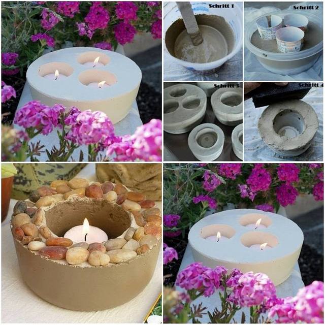 Só-liszt gyurmából vagy agyagból is elkészítheted az alábbi mécsestartókat a képen látható módon. Készíts el a neked szimpatikusabb anyagot, amellyel dolgozni szeretnél, majd töltsd egy mécsestartónak való edénykébe. Ebbe kerülhetnek a kis mécsestartó nagyságú formák (például kartonból vagy műanyagból – ezek később eltávolításra kerülnek), és hagyd megszáradni az anyagot. Ha szeretnéd a tetejét díszíteni, akkor addig tedd, míg nem szilárdult meg a gyurma/agyag. Dekoráld kavicsokkal, gyöngyökkel, flitterekkel – határ a csillagos ég.