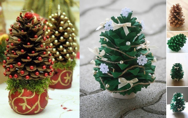 Ehhez a hangulatos asztaldíszhez nincs másra szükséged, mind tobozra, gyöngyökre, műfűre, egy pici kaspóra és ragasztóra. Helyezd a műfövet a kaspóba, a toboz ágacskáira pedig ragassz gyöngyöket és/vagy szalagokat, majd helyezd a tobozt a műfűre. Ha még látványosabb hatást szeretnél elérni, színezd zöldre a tobozt vagy fújd le hóspray-vel.