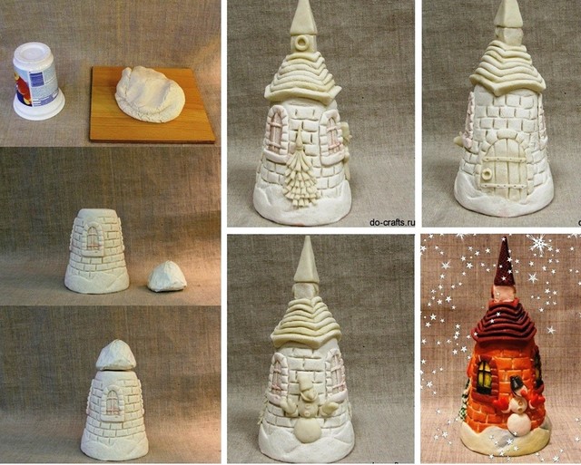 A só-liszt gyurma nem hiányozhat a kézi készítésű ajándékok felhozatalából, hiszen elképesztő csodákra lehetünk képesek általa. Ugyanúgy lehet vele dolgozni, mint a rendes gyurmával, így készíthetünk karácsonyfát, hóembert, ajándékdobozt vagy ahogy a képen látható: házat is. Ezt követően a festés már igazán nem okoz nagy problémát.