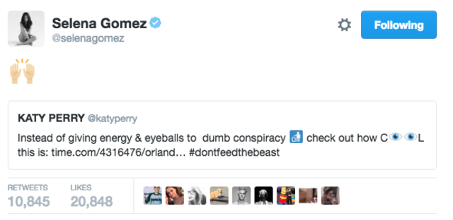 A tweetjét Selena Gomez is megosztotta, néhány imádkozos emoji-val fűszerezve.