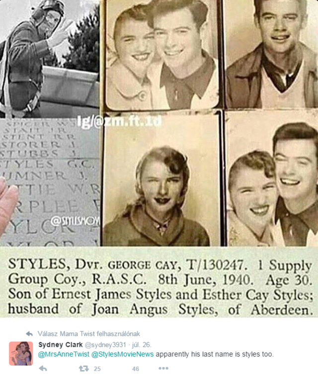 A hasonlóság mégsem olyan meglepő, hiszen a férfi Harry Styles nagyapjának testvére, aki a 40-es években harcolt Dunkirkben, pont ott, ahol Styles forgatott az elmúlt hónapokban. Ha jobban belegondol az ember, ez mégis kísérteties, hogy pont ezt a filmet és pont oda vállalta el Styles, ahol a rokona vesztette életét.