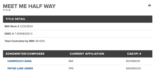 Az elmúlt órákban újabb izgalmas hír járta be a világsajtót, ugyanis kiszivárgott egy dokumentum, ami szerint Liam regisztrálta a BMI-nél a Meet Me Half Way című szerzeményét, ami szólókarrierjének első mérföldköve lesz, megjelenésére azonban még várnunk kell. Az énekes Sara Harmouch közreműködésével szerezte a dalt, a BMI pedig megerősítette, hogy hivatalosan július 19-én regisztrálták azt.