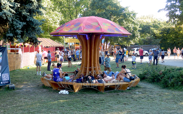 Lássuk be, egy fesztiválon nem nehéz lejárni a lábad és elfáradnod a nyüzsgésben. Éppen erre találták ki a lumináriumot, ami leginkább egy felfújt légvárra emlékeztetett, kívülről, és belülről egyaránt: annyi különbséggel, hogy itt nem ugrálni, hanem pihenni lehetett.