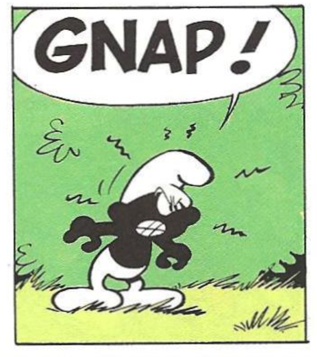 Az első képregényük, a The Black Smurf, 1963-ban jelent meg. Itt a törpök megbetegednek, melynek tünetei igen érdekesek. Bőrszínük feketévé változik, elveszítik az intelligenciájukat, valamint nem lesznek képesek értelmes beszédre, csak a ‘gnap’ hang kiadására.