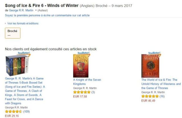 A napokban azonban az Amazonon izgalmas előjegyzési lehetőség bukkant fel a The Winds of Winter képében, mely köztudottan a regénysorozat hatodik, régóta várt kötetének címe, megjelenését pedig 2017 márciusára datálták. Ugyan e dátumot egyelőre se az író, se a kiadója, a Harper Collins nem erősítette meg, de azért reménykedünk abban, hogy a hír igaznak bizonyul.