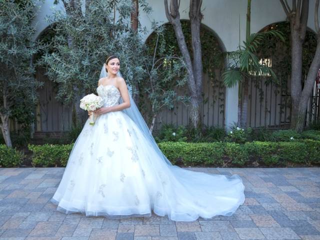 A menyasszony Rosa Clará-ruhában, Neil Lane-ékszerekben és Betsey Johnson-cipőben tündökölt, a hajára pedig 35 fontot költöttek elmondása szerint.