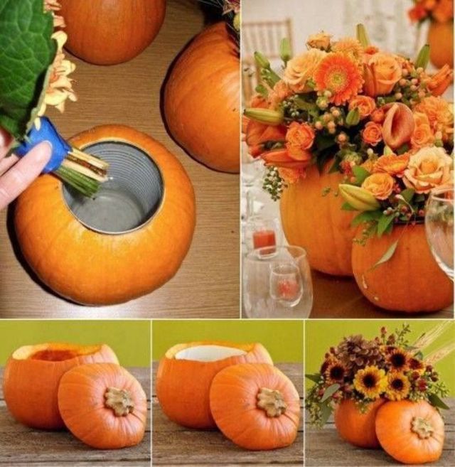 Ha idén úgy döntöttél, hogy nem lámpást készítesz a tökből, hanem inkább a hangulat miatt vetted meg e zöldséget, akkor megmutatjuk, hogyan készíthetsz belőle egy egészen egyszerű, mégis hangulatos díszítőelemet. Ehhez nincs más dolgod, mint levágni a tök tetejét, kivájni a belsejét és egy kisebb edénykét (pl. konzervdobozt vagy egy félbevágott ásványvizes flakont) elhelyezni benne, amit máris megtölthetsz egy frissen szedett / vásárolt csokorral.