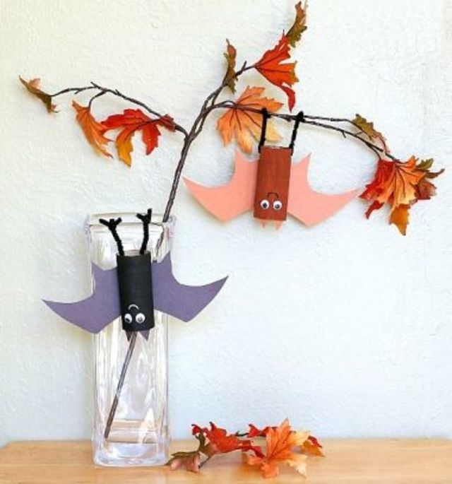 A Halloweenhoz hozzátartoznak az éjszaka teremtményei – így a denevérek is. Az alábbi dekorációhoz WC papír gurigára, kartonpapírra, filctollra és ragasztóra lesz szükséged. A papírból vágj a denevérnek szárnyakat és füleket, a gurigákat pedig vagy festékkel fesd le vagy vond be színes krepp papírral. Ha ezzel megvagy, ragasztó segítségével erősítsd rájuk a szárnyakat és füleket. Rajzolj nekik arcot és már készen is vagy.