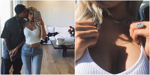 A divat- és szépségiparban is érdekelt tévésztár egyébként más beszélnivalóval is szolgált a sajtónak pár órával ezelőtt, ugyanis az Instagramon közzétett fotói arra engednek következtetni, hogy párja, Tyga gyűrűt húzott az ujjára. Az erről szóló találgatásokat egyelőre egyikük sem erősítette meg, ám az illusztris gyémántgyűrű mégiscsak beszédes...