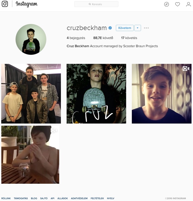 A Scooter Braun Productions azzal kezdte Cruz karrierjének beindítását, hogy létrehozott egy Instagram-fiókot, ahol az ifjú titánnal kapcsolatos újdonságokat követhetik nyomon a követők – a profil kezelését azonban nem Beckham, hanem a cég végzi. Ide egyébként feltöltésre kerültek azok a korábban már látott videók, melyeken Cruzt hallhatjuk énekelni. A legújabb felvételen egyébként nem kisebb személlyel, mint Calvin Harrisszel láthatjuk a Beckham-fiúkat, így joggal merül fel a kérdés, hogy vajon a skót lemezlovas felkarolni készül az új nemzedéket?
