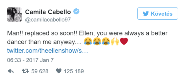 hirdetésDecember közepén járta be a világsajtót a hír, miszerint Camila Cabello a Fifth Harmonyból való távozás mellett döntött, nem sokkal később pedig az is kiderült, hogy csapattársai négyesben folytatják tovább. Természetesen ez továbbra sem változott, csupán az amerikaiak kedvenc műsőrvezetője, Ellen DeGeneres játszott el a gondolattal, mi lenne, ha átvenné Camila helyét a népszerű lánycsapat élén.