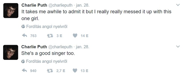 A We Don't Talk Anymore énekese a Twitteren hozta nyilvánosságra, hogy bánja, amiért összekuszálta a dolgokat egy lánnyal.